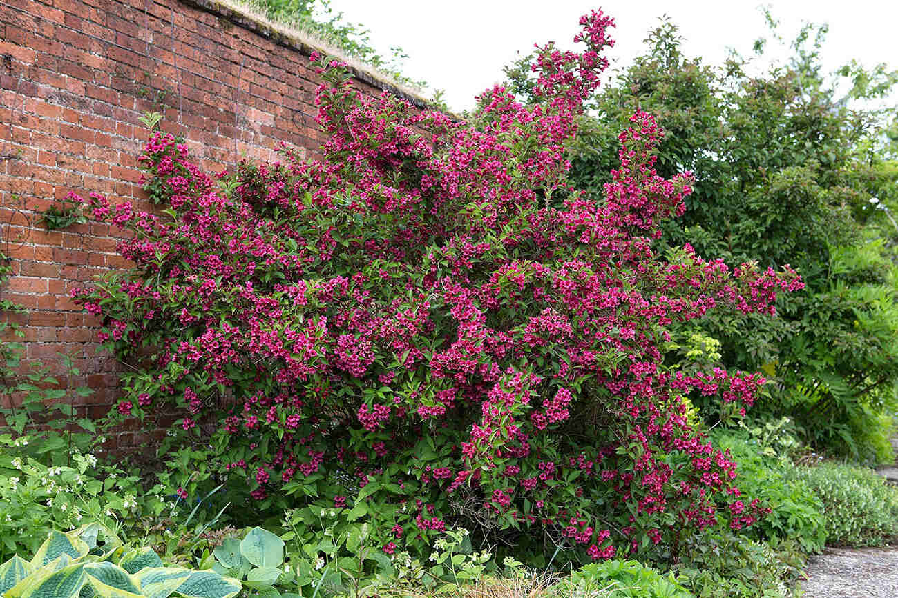 Роскошный кустарник с потрясающими декоративными свойствами. Форма кроны раскидистая за счет боковых склоняющихся побегов. Листья матовые, в течение сезона меняют окрас от зеленовато-бурых до коричневых оттенков. Трубчатые розовые цветки покрывают ветки почти все лето. Такой яркий акцент прекрасно смотрится на газоне, рядом с зеленолистными растениями. Зимостойкость −25 °С, на зиму требует укрытия.