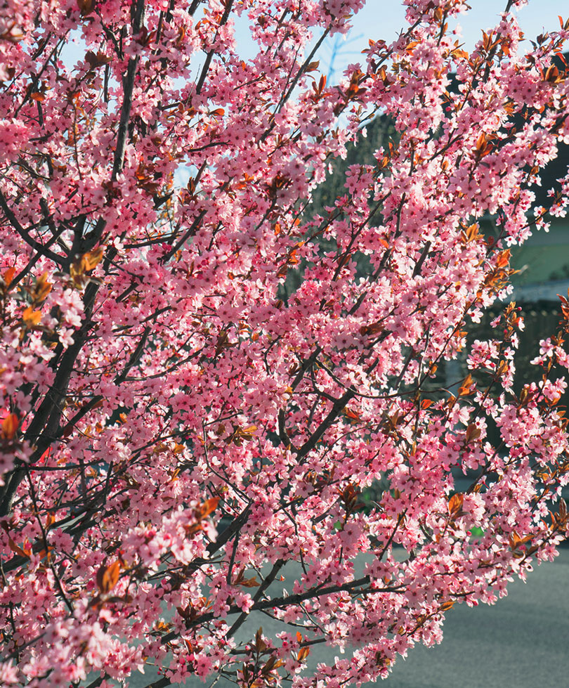 Живописное невысокое дерево. Листва тёмно-пурпурная, иногда чёрно-красная, с металлическим отливом. Цвет листьев постоянен весь сезон. Цветёт во второй половине мая, на две недели превращаясь в ярко-розовое облако. Плоды тёмно-красные, съедобные, вкус, как у сливы. Предпочитает солнечные, закрытые от ветра места, нейтральные или чуть щелочные почвы. Морозостойкость -30 °С.