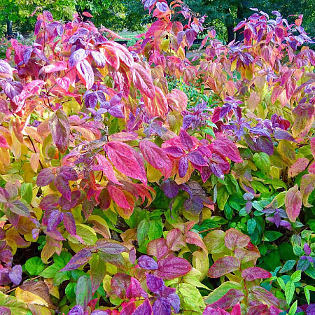 Эту спирею считают лучшим сортом среди декоративно-лиственных кустарников. Окраска динамичная, меняется в зависимости от времени года: весной появляются очень крупные листья огненного цвета – желтые, красные, летом они зеленеют, а осенью окрашиваются во все оттенки оранжево-свекольного или желтого. Цветки светло-розовые, собраны в маленькие метелки. Имеет хороший рост, зацветает на третий год. Прекрасно формируется. Великолепно сочетается в посадках с хвойниками.