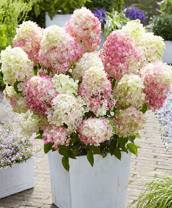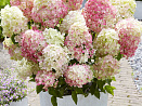 Красивый сорт! Соцветия рыхлые, сначала белого цвета, потом быстро розовеют и осенью становятся ярко розовыми. Во второй половине лета появляется хлороз, подкисление почвы и обработка железом не помогли, будем пробовать сульфат магния.