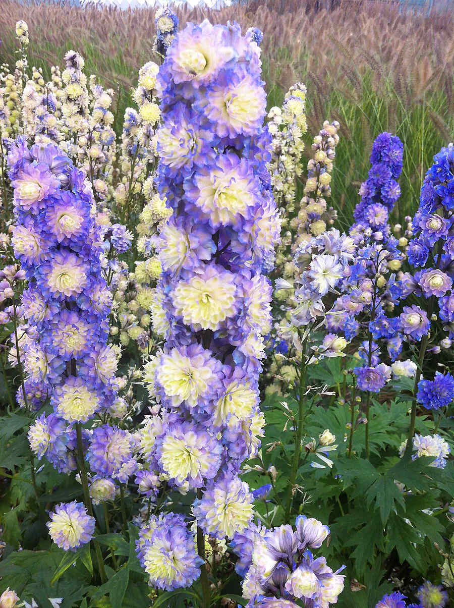 Красивый крепкий шотландец с махровыми васильково-лиловыми цветками диаметром 5–6 см. Светло-кремовый центр разбавляет холодные оттенки, создавая более воздушный и гармоничный образ. Основанием для цветоносов служит пышная розетка из резных, ажурных листьев. При подборе места для Болеро учитывайте его стремительный рост и размах до 60 см в диаметре. Сорт засухоустойчивый. Зимостойкость −35 °С.