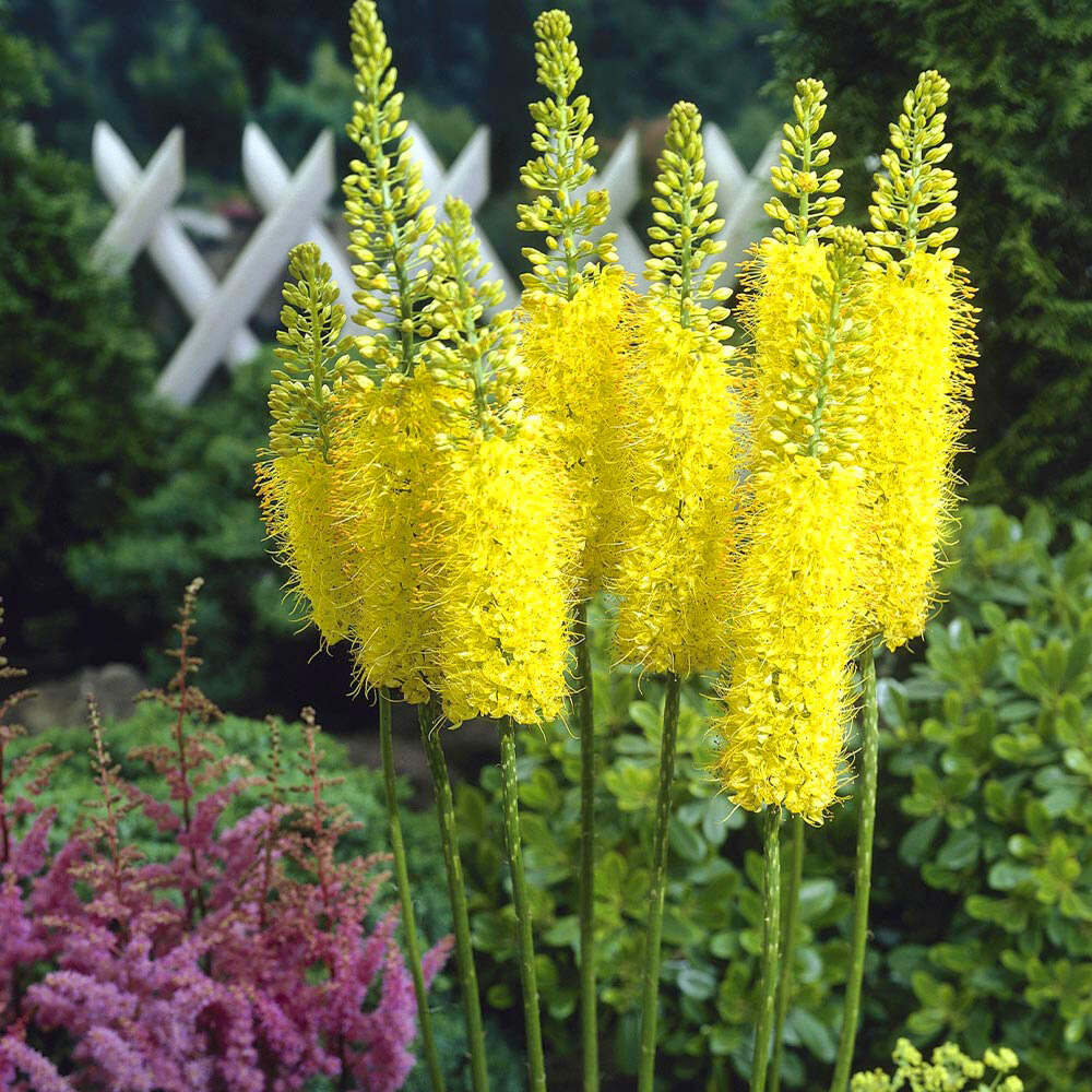 Гордо устремленные вверх роскошные и пышные колосья. Гибридные формы с одними из самых плотных соцветий. Они действительно похожи на пушистые хвосты и состоят из множества колокольчатых цветов. Ценные медоносы. Прямостоячие заостренные листья розетки, расходящиеся веером от центра куста, придают графичности и эффектности. Настолько самодостаточны в посадках, что не нуждаются в дополнении. Однако, безусловно хороши при смешивании с другими травянистыми растениями. Кисти великолепны в срезке, могут стоять в вазе до трёх недель.