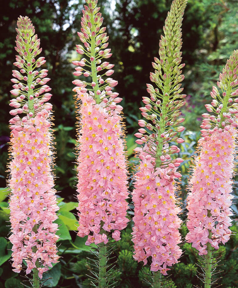 Гордо устремленные вверх роскошные и пышные колосья. Гибридные формы с одними из самых плотных соцветий. Они действительно похожи на пушистые хвосты и состоят из множества колокольчатых цветов. Ценные медоносы. Прямостоячие заостренные листья розетки, расходящиеся веером от центра куста, придают графичности и эффектности. Настолько самодостаточны в посадках, что не нуждаются в дополнении. Однако, безусловно хороши при смешивании с другими травянистыми растениями. Кисти великолепны в срезке, могут стоять в вазе до трёх недель.
