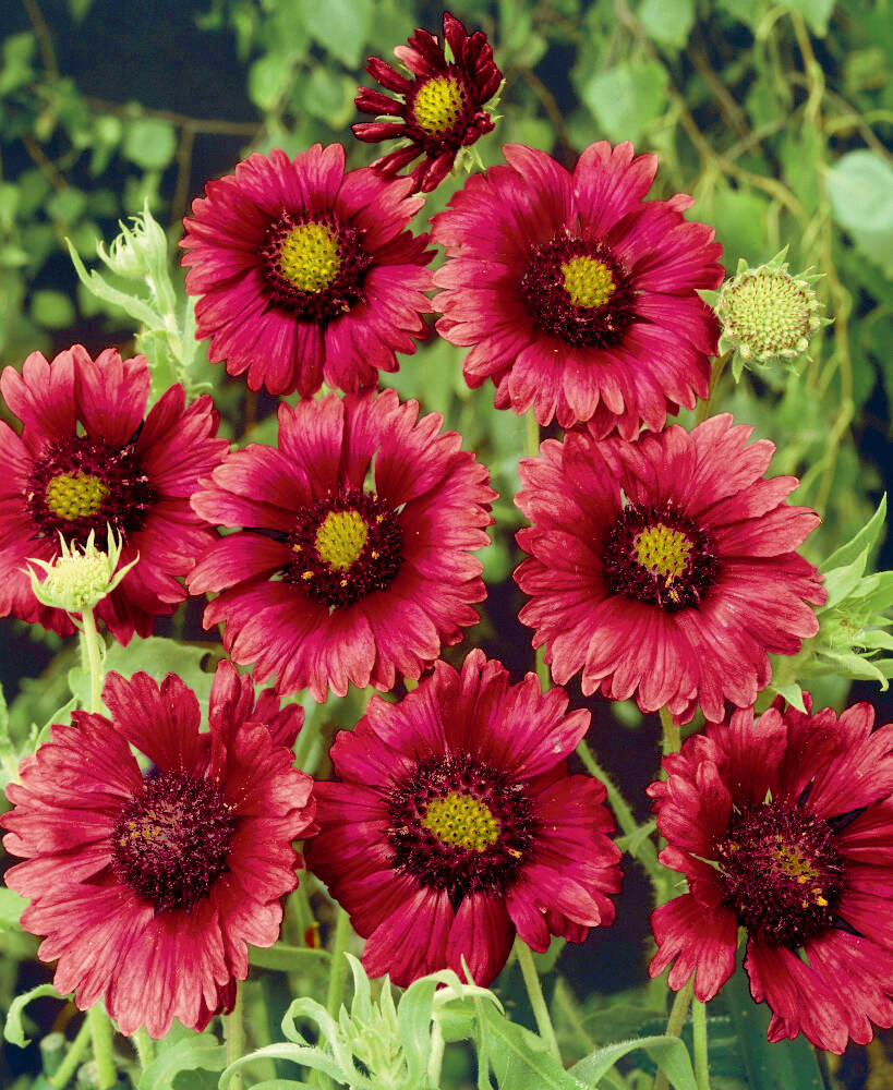 Полноправная хозяйка любой клумбы! Ее цветение подобно фейерверку! Уже в начале лета над густой розеткой листьев начинают появляться высокие стебли с крупными, до 9 см в диаметре, одиночными корзинками ярких, винно-красных цветков с золотистым напылением на кончиках лепестков. Позднее на их месте образуются семенные коробочки – декоративные пушистые шарики. Цветение длительное, вплоть до самых заморозков. Зимостойкость до -40°C.