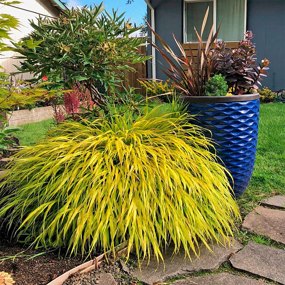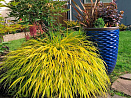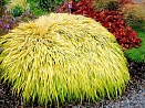 Изящный злак с длинными стройными золотистыми листьями. Разрастается в одном направлении и формирует пышные каскадные куртины. Наиболее зимостойкий из всех сортов. Перепады температуры весной и осенью могут придать легкое покраснение листьев. В середине лета появляются легкие метелки соцветий. Подходит для бордюров, красиво сочетается с хостами и гейхерами. Особого ухода не требует, не поражается болезнями. На зиму рекомендуем мульчирование. Зимостойкость до −35 °С.