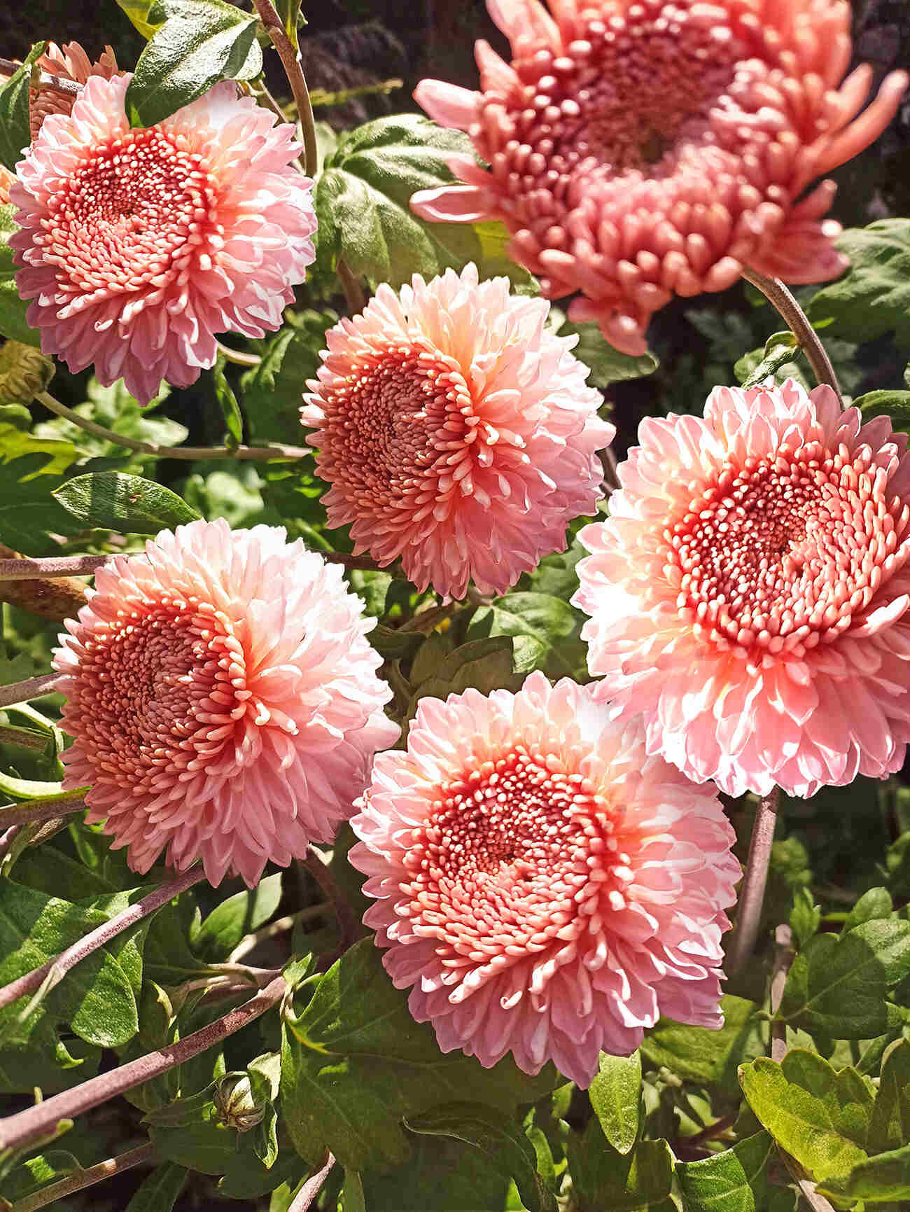 Крупные махровые соцветия, невероятно нежные, диаметром до 10 см, отличают Розалинду от других сортов. Наружные лепестки более широкие и крупные, чистых розовых оттенков. В центре сосредоточены более мелкие, розовато-персиковые. Куст компактный, с вертикальными стеблями, разрастается в объеме до 40 см. Великолепно смотрится в осенних букетах. Зимует в открытом грунте под снегом.