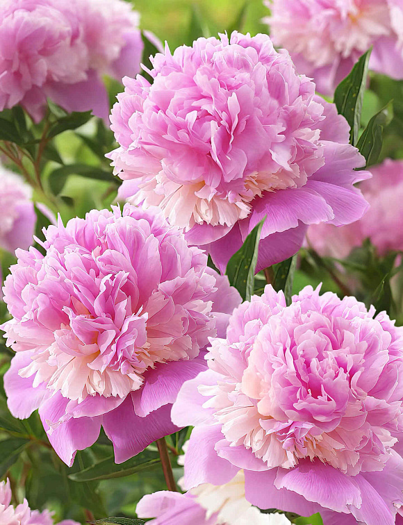 Считается одним из красивейших пионов. Бесподобный по форме и окраске, трехслойный пышный цветок с нежно-розовыми лепестками и махровой кремовой юбочкой посередине. Аромат приятный, ярко-выраженный. Срок цветения средний. Зимостойкость до -35°С.