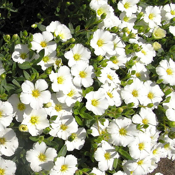 Известна также под более благозвучным названием – песчанка горная. Очень милое, привлекательное миниатюрное растение. В процессе роста образует густую подушку. Листья небольшие, кожистые, длиной всего до 2 см. В конце весны или начале лета растение становится усыпанным нежными снежно-белыми цветками. Прекрасное украшение каменистых композиций, садовых контейнеров и альпийских горок. Несмотря на столь малые размеры, этот выходец из суровой горной местности отличается стойким и выносливым характером. Зимует под снегом.