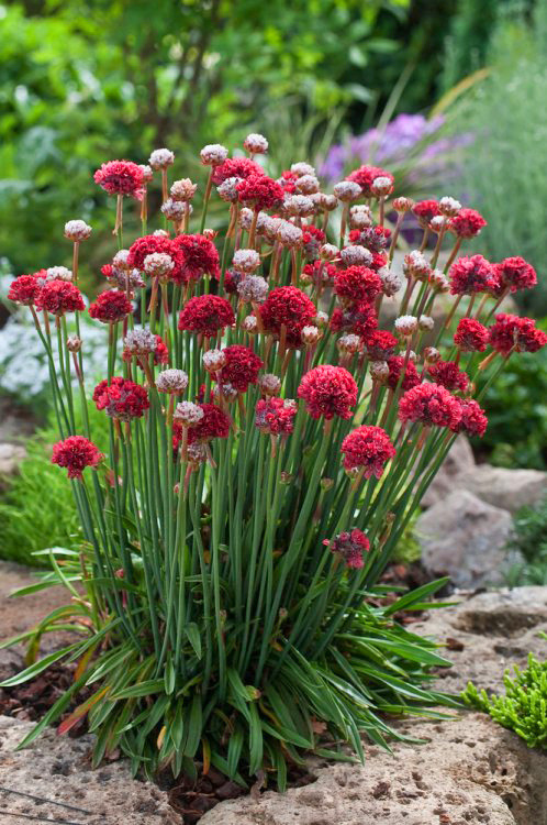 Прима-балерина сада в красном! Изящный яркий многолетник! Маленькие, очень привлекательные алые цветки собираются в плотные головки-соцветия на тонких прямостоячих стеблях. Бутоны могут формироваться до поздней осени. Листья сочно-зеленые, линейные, уходят под снег, не меняя окраски. На зиму побеги можно укоротить почти до основания. При достаточном слое снежного покрова дополнительного укрытия не требуется.