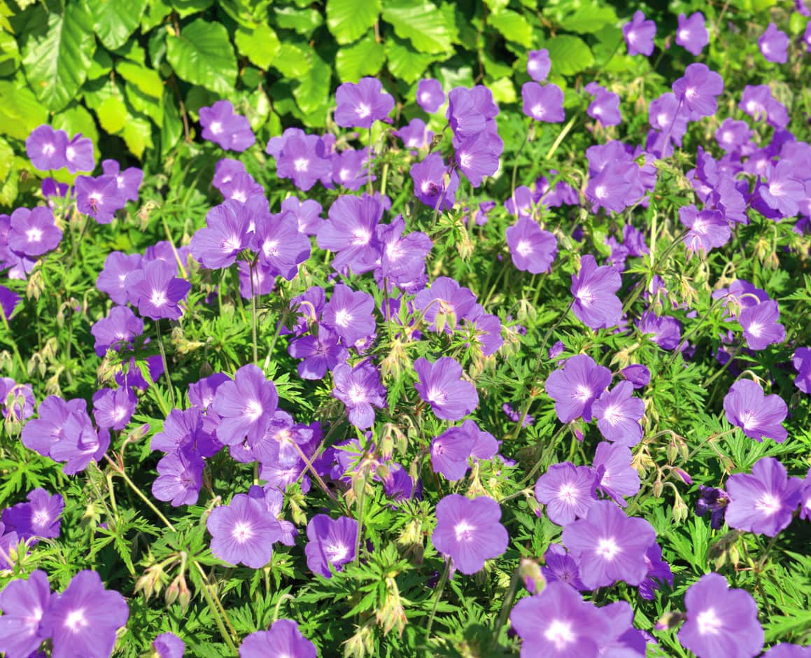 Один из лучших и востребованных сортов гибридной герани. Имеет международные награды. Множество цветов с приятным ароматом в течение всего лета. Цветки крупные (5-6 см), чашеобразные, фиолетово-синие с белым центром и красными прожилками. Красиво смотрятся на фоне ажурной листвы. Листва ярко-зеленая воздушная. Куст раскидистый, ветвистый; увеличивается в несколько раз в течение лета. Цветение обильное. В укрытии на зиму не нуждается.