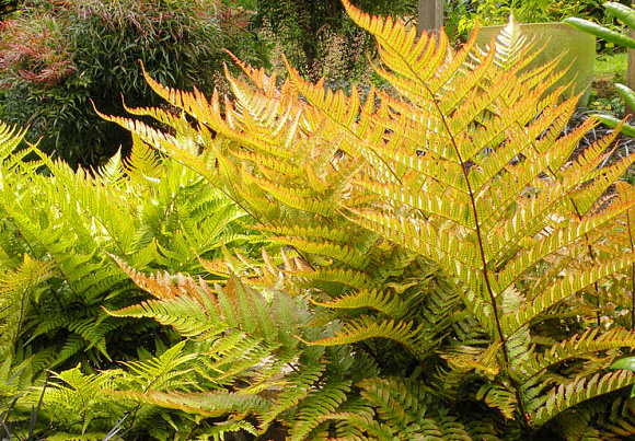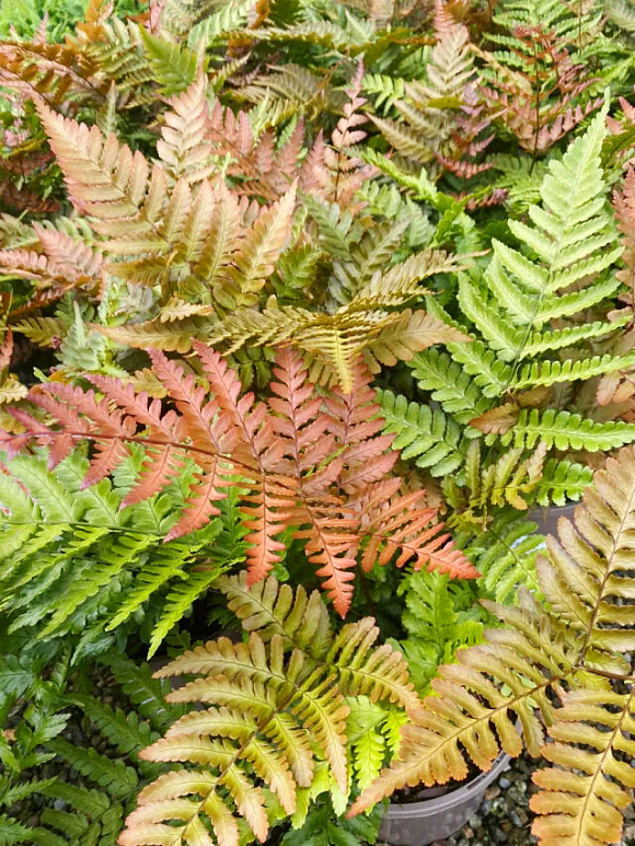 Ажурный папоротник-огонек с широкотреугольным дважды- и триждыперистым листом, в молодом возрасте светло-медно-оранжевым, в зрелом темно-зеленым. Медный оттенок смотрится нестандартно и очень эффектно на фоне других растений. Может использоваться как почвопокровное растение, хорошо смотрится в одиночной и групповой посадке под деревьями. На зиму укрывают опавшей листвой слоем 5-7 см и лапником.