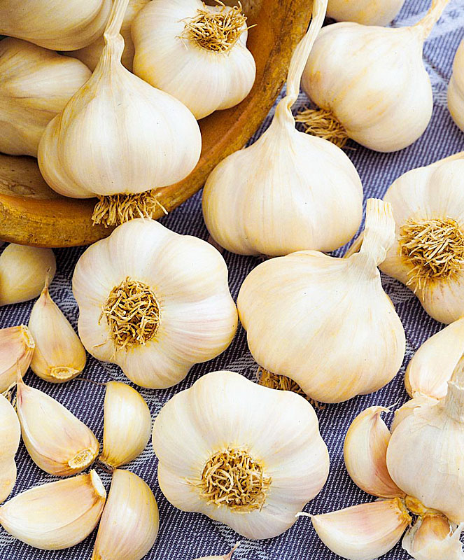 Белая, плотная, очень крупная луковица (массой 59–62 г), каждый из пяти зубков-крепышей весит до 12 г, мякоть белая, сочная, пронзительно острого вкуса. Среди признанных достоинств: устойчивость к растрескиванию, проверенная в течение многих лет стабильная урожайность. Ну а тот, кто не пробовал запечённую свинину, нашпигованную этим чесноком, тот очень много потерял!