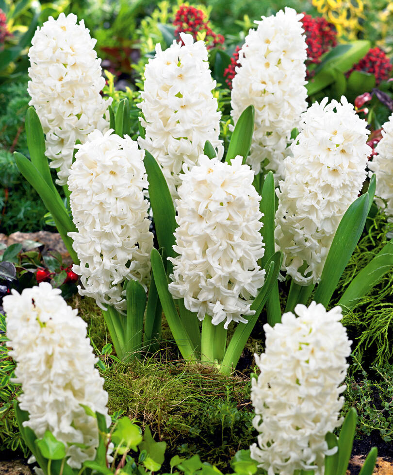 Применение. Сажают обычно группами. Благодаря колоссальному разнообразию сортов можно создавать сложные композиции, состоящие целиком из гиацинтов, различающихся по цвету, высоте и срокам цветения. Используются в альпийских горках, любых цветниках, для посадок вдоль дорожек, в сочетании с другими весеннецветущими луковичными и многолетниками. Отличное растение для зимней и весенней выгонке. Срезанные соцветия простоят в букете до 7 дней.