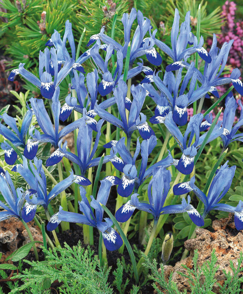 Это всплеск красок среди тающего снега! Очаровательное по-настоящему яркое цветение и дивное благоухание. Удивительные миниатюрные ирисы напоминают орхидеи. Крупные соцветия, 6-9 см в диаметре, насыщенных оттенков с привлекательными разводами и пятнами на лепестках. Продолговатые тонкие листья окрашены в яркий зеленый оттенок.