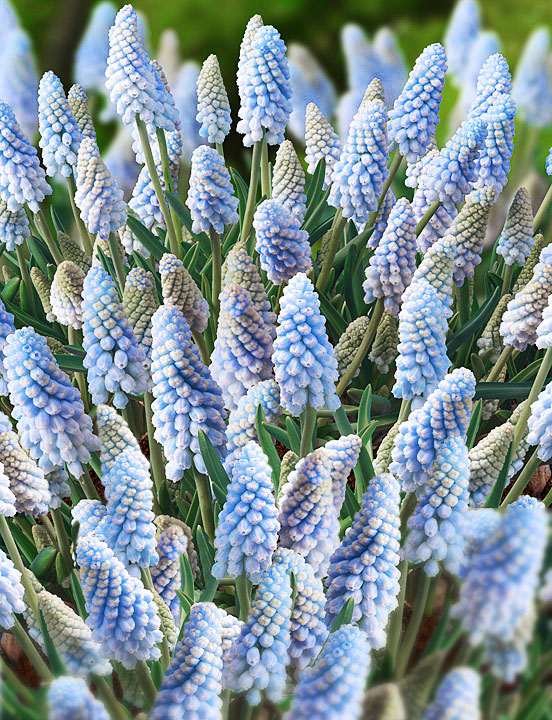 Уход. Поливы необходимы при засушливой погоде во время цветения, а после окончания вегетации они вредны. Рыхления и регулярные прополки, помогут держать куртины мускари свободными от сорняков. В случае посадки на газоне, косить траву можно только после отмирания листьев.
