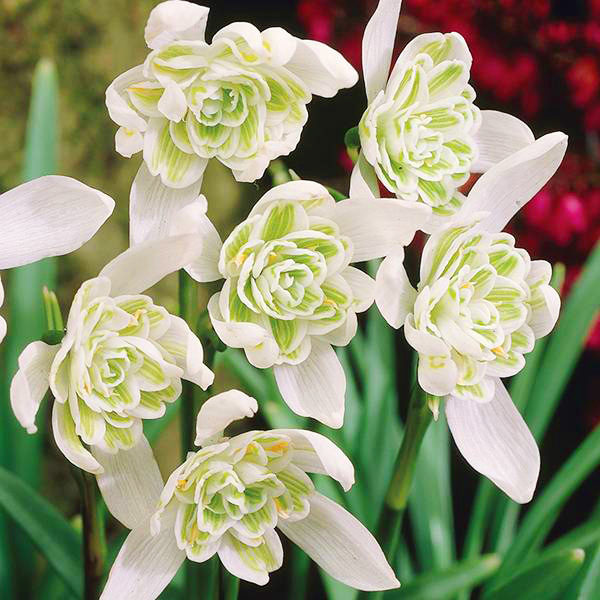 Самый нежный символ пробуждения природы. Прекрасно переносит суровую русскую зиму и появляется с первыми проталинами. Лучше всего чувствует себя на солнечных возвышенных участках, с южных сторон возле построек, в приствольных кругах. Листья сочные, блестящие. Склоненные вниз белые бутончики распускаются в очаровательные махровые цветки зеленоватого оттенка, диаметром 3,5 см.
