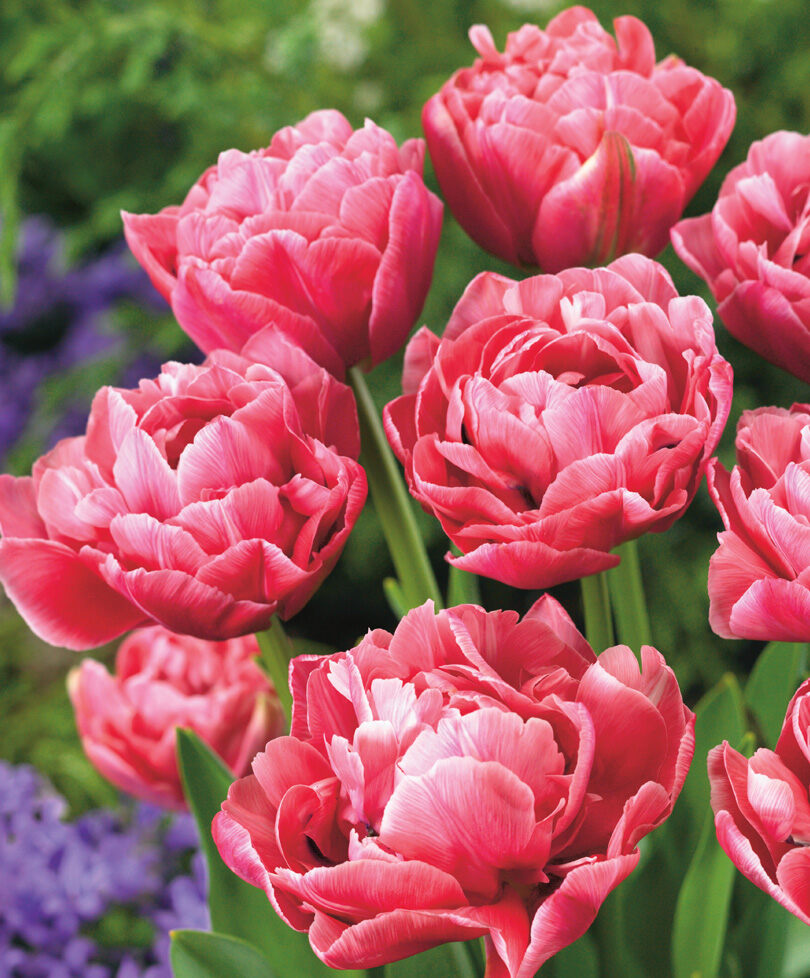 Настоящий успех! Роскошный пионовидный тюльпан с крупными лепестками пурпурно-розового оттенка и очень тонкими белыми прожилками по краю. Сорт имеет хорошую выносливость. Бутоны сидят на высоких крепких стеблях и легко переносят непогоду. Цветение продолжительное. Великолепен при массовой посадке.