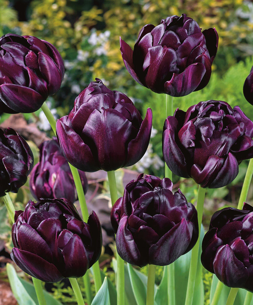 Поражает своим почти черным окрасом. Уникальный темно-винно-фиолетовый оттенок роскошных сатиновых лепестков будет эффектно контрастировать с другими цветами в саду. Распускающийся позже остальных сортов, это тюльпан порадует особой пышностью и продолжительностью цветения. Цветок источает изысканный аромат, подчеркивающий его экзотичный вид.