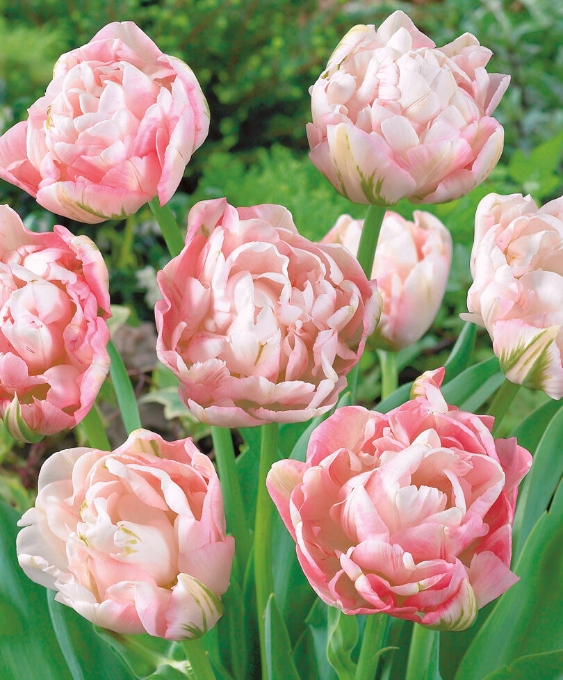 Такую красоту трудно запечатлеть на фото. Каждый из лепестков представляет собой тонкое сочетание жемчужно-белых и нежно-розовых оттенков с легкими вкраплениями зеленого. Цветки крупные, пионовидные, махровые, выглядят очень выразительно и достигают в диаметре 12 см. Лепестки долго не опадают, а цветки держат форму, делая цветение продолжительным и обильным.