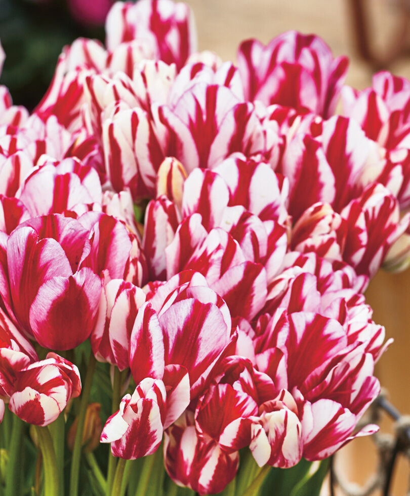 Языки алого пламени на белых лепестках. Яркая и необычная окраска этого тюльпана выделяет его среди других сортов. На каждом стебле в среднем формируется 5–8 эффектных цветков. Идеальный кандидат для срезки – всего один стебель образует пышный букет.