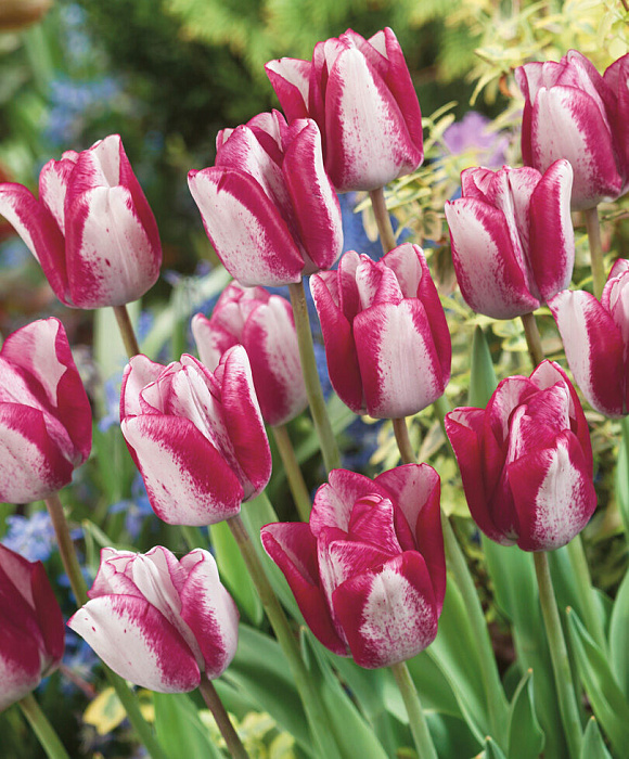 Уникальный цветовой контраст. Вначале лепестки почти белые с тонкими пурпурно-розовыми полосами по краю, но по мере распускания цветка интенсивнее и больше становится малиновый кант. Выигрышно смотрится в горшках и контейнерах.