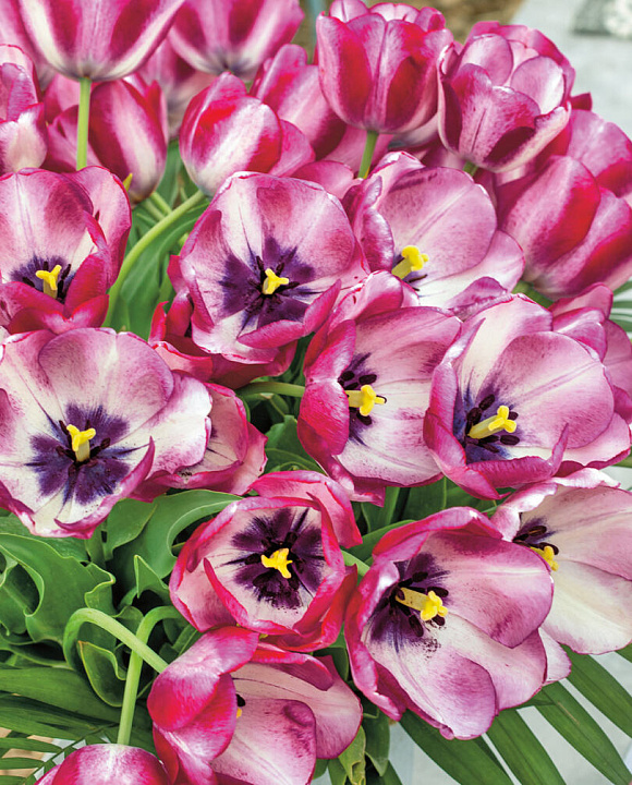Применение. Тюльпаны находят очень широкое применение – их сажают в любых цветниках, бордюрах, сложных композициях с многолетниками, хвойниками и декоративными кустарниками, используют для оформления балконов и патио. Низкие виды и сорта замечательно смотрятся на альпийских горках, рокариях, на переднем плане цветников и группами на газоне, в приствольных кругах деревьев и кустарников, а так же в контейнерных посадках. Высокие тюльпаны замечательны в официальных, партерных и ковровых цветниках, в посадках перед декоративными кустарниками. Часто используют тюльпаны для выгонки к весенним праздникам, а так же для срезки.