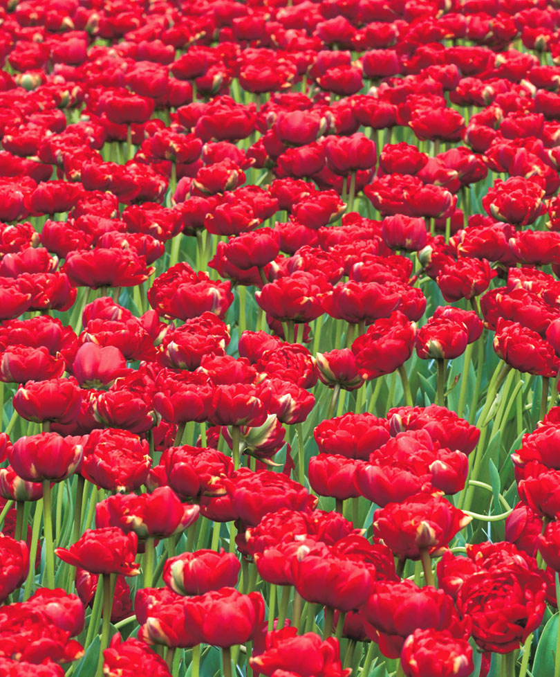 Применение. Тюльпаны находят очень широкое применение – их сажают в любых цветниках, бордюрах, сложных композициях с многолетниками, хвойниками и декоративными кустарниками, используют для оформления балконов и патио. Низкие виды и сорта замечательно смотрятся на альпийских горках, рокариях, на переднем плане цветников и группами на газоне, в приствольных кругах деревьев и кустарников, а так же в контейнерных посадках. Высокие тюльпаны замечательны в официальных, партерных и ковровых цветниках, в посадках перед декоративными кустарниками. Часто используют тюльпаны для выгонки к весенним праздникам, а так же для срезки.
