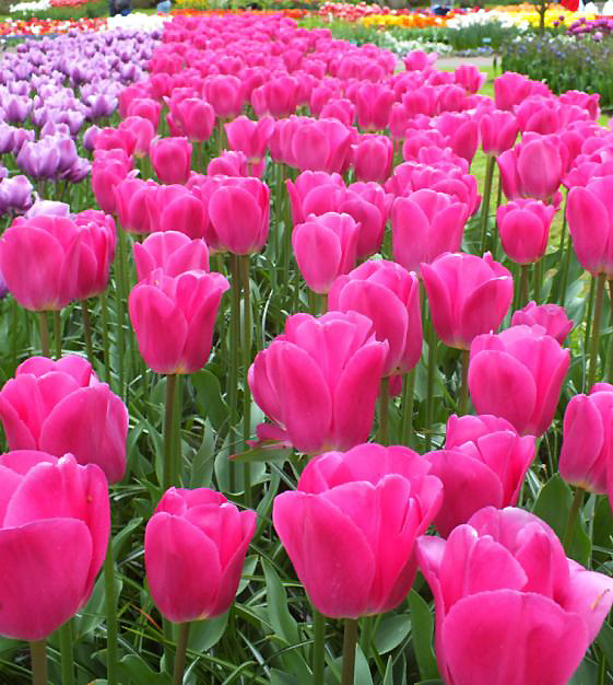 Применение. Тюльпаны находят очень широкое применение – их сажают в любых цветниках, бордюрах, сложных композициях с многолетниками, хвойниками и декоративными кустарниками, используют для оформления балконов и патио. Низкие виды и сорта замечательно смотрятся на альпийских горках, рокариях, на переднем плане цветников и группами на газоне, в приствольных кругах деревьев и кустарников, а так же в контейнерных посадках. Высокие тюльпаны замечательны в официальных, партерных и ковровых цветниках, в посадках перед декоративными кустарниками. Часто используют тюльпаны для выгонки к весенним праздникам, а так же для срезки.