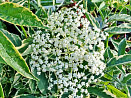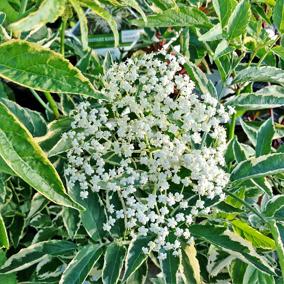 Ее любят за красоту и простоту одновременно! Кустарник с привлекательной двухцветной листвой. Окрас листьев зеленый с желто-кремовым окаймлением. Декоративность сохраняется весь сезон! Соцветия зонтичные, крупные, кремовые, источают приятный аромат, привлекающий пчел и других насекомых-опылителей. Плоды (4–6 г), блестящие, имеют черный цвет и кисло-сладкий вкус. Ягоды добавляют в варенья, компоты, используют при засолке овощей. Куст компактный, полураскидистый, высотой 2–3 м. Устойчива к жаре и засухе. На зиму не требует специальных укрытий.