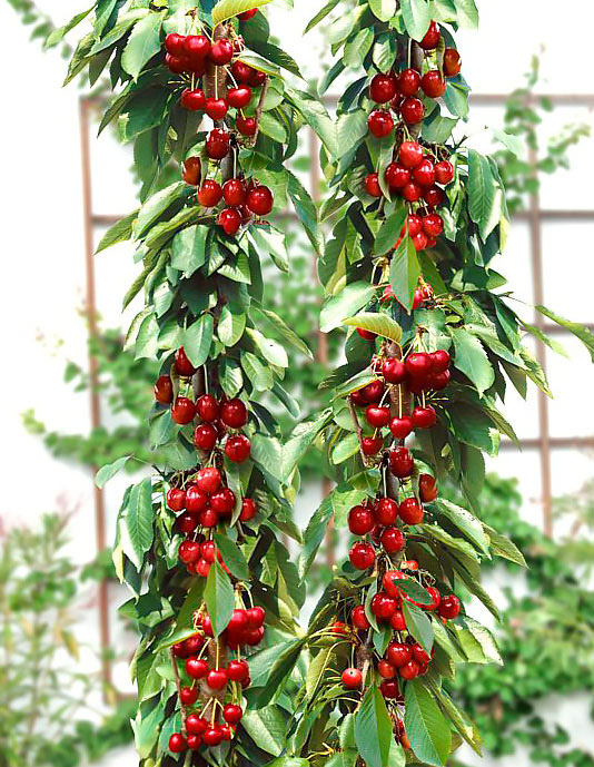 Манящая и соблазнительная колонновидная черешня. Компактная, высотой 3 м. Крона густооблиственная диаметром не более 1 м. Веток мало, скелетные побеги весьма короткие. Ягоды невероятно привлекательные и аппетитные, выразительно-рубиновые с глянцевым блеском, крупные (12–15 г), очень сладкие с медовым послевкусием, кислинки нет совсем! Созревают во второй половине июня. Сорт скороплодный, отличается повышенной устойчивостью к морозам и болезням. Рекомендованный опылитель Черешня Сильва.