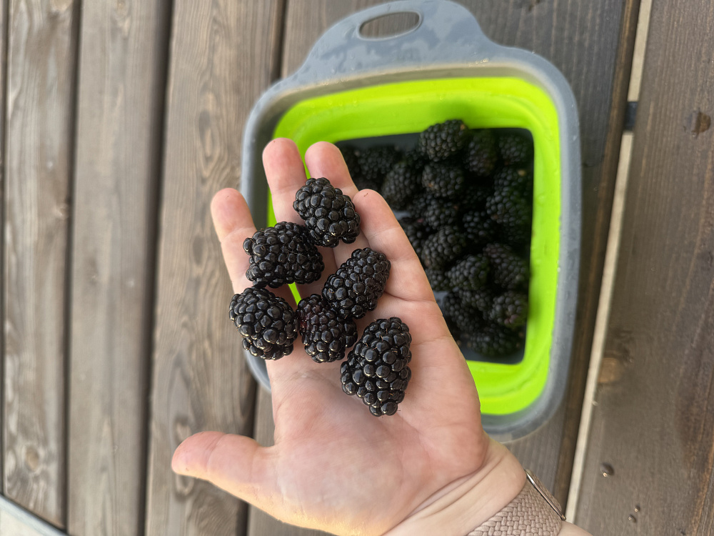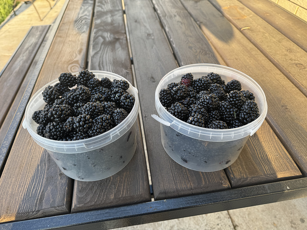 Ежевика принесла первый плод на второй год, на третий разрослась в огромный кустище! А урожая навалом! Очень крупная, сладкая, все удивляются. Растет как безумная, ухода никакого и не требует.