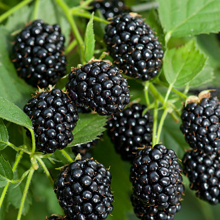 Новейший бесшипный сорт с превосходными вкусными и крупными плодами массой до 10 г. Иссиня черные ягоды тонкого нежного вкуса со сбалансированным сочетанием сахаров и кислот. Мякоть сочная, плотная. Ягоды хорошо хранятся и транспортируются. Идеально подходят для заморозки, сушки, любых заготовок и домашнего вина. В свежем виде станут любимым лакомством для всей семьи. Созревает урожай на двулетних побегах в ранние сроки. Собирать его одно удовольствие - шипов на ветвях совсем нет! Растения здоровые, быстрорастущие, приспосабливаются к любому климату. Побеги вертикальные, хорошо разветвленные.