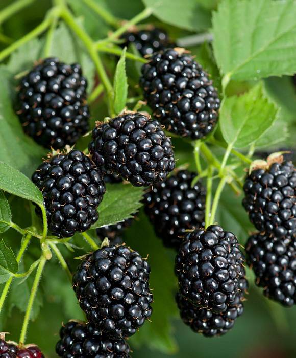 Как же хороша эта черноглазая сестра малины! Примечательна и отменным медово-сладким вкусом крупных, плотных, неосыпающихся ягод, отличающихся изысканным, тонким ароматом. И повышенной устойчивостью к «малинным» вредителям и болезням. И нереально высокой урожайностью, которая у отдельных сортов достигает 20 кг с куста! Растение мощное с прямостоячими прочными побегами высотой до 2 м. У большинства современных сортов они не имеют шипов. Плодоносит ежевика на прошлогодних побегах, поэтому на зиму однолетние ветви пригибают к земле и укрывают на случай бесснежной зимы, а отплодоносившие – вырезают. Ежевика любит солнце, плодородные, нейтральные почвы и регулярные поливы. В таких условиях она будет долго радовать вас высокими стабильными урожаями.