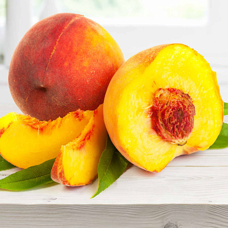 Чудесный персик канадской селекции с сильным характером! Сумел пробить себе дорогу в сады средней полосы России! Самоплодный. Первые плоды попробуете уже на 3 год после посадки. Созревают дружно в конце лета. Со взрослого дерева сбор в среднем 60 кг. Персики крупные, весом 150–200 г, шарообразной формы, ярко-красного цвета, без опушения. Мякоть очень сочная. Солнечно-желтая, ароматная, с привкусом абрикоса и сахаристым терпким послевкусием. Косточка хорошо отделяется. Высота дерева всего 2–2,5 м. Крона округлая, компактная, смотрится очень декоративно в любой период вегетации.