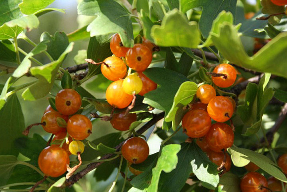 Смородина золотистая не относится ни к красной, ни к чёрной смородинам. Это обособленный вид родом из Канады или США. ,значительно выше и шире душистых видов.Для перекрёстного опыления, нужно сажать несколько кустов золотистой смородины (ягоды которой бывают чёрного, тёмно- красного, оранжевого цвета, в зависимости от сорта.) В Ростовской обл . эту смородину используют в полезащитных лесополосах. Мы детворой ходили её собирать для варенья и компота- вкуснотища