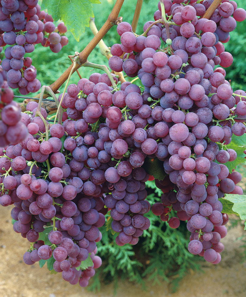 Этот сорт-путешественник невредимым добрался до регионов Сибири и прочно обосновался на участках наших северных садоводов. Особую ценность представляют ягоды — очень вкусные и сладкие, с запахом карамели. Лучше и не придумать для свежего употребления. Урожайность высокая (до 25 кг с куста). Ягоды овальной формы, до 7 г, могут долго держаться на кусте. Куст среднерослый, но разрастается достаточно хорошо. На лозе слой древесины формируется не сразу, поэтому рекомендуем ежегодно делать среднюю и короткую обрезку в местах с толщиной прироста 20–25 см. Устойчив к основным болезням винограда, не подвержен гниению, а также хорошо противостоит нападению клещей.
