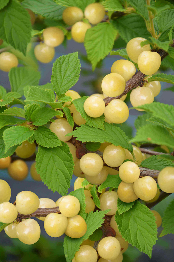 Неужели и такое возможно? Белая вишня! Весной Белоснежка надевает светло-розовый цветочный наряд, летом удивляет экзотическими полупрозрачными плодами кремово-жёлтого цвета. Ягоды очень вкусные, сладко-кислые, с легким вишневым ароматом. Съемная зрелость наступает уже в июле. Сорт самобесплоден, рекомендуется высаживать в группах. Одинаково хорошо переносит засуху и низкие зимние температуры. Высота кустарника 2 м. Будьте аккуратней с обрезкой! Она ограничивает плодоношение.