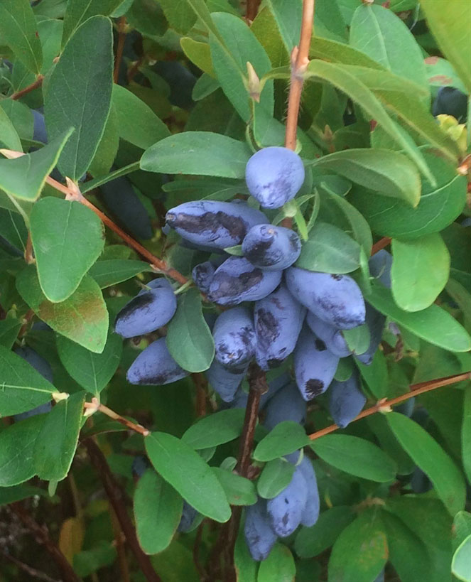 Жимолость — самая первая ягода сезона, созревает очень рано. В отдельные годы в Подмосковье спелые ягоды жимолости появляются 29-30 мая. Ягоды садовой жимолости крупные, тёмно-синие с густым сизым налётом, по цвету близки к лучшим сортам чернослива. Новейшие сорта жимолости дают очень крупные ягоды массой до 2 г и не имеют даже намёка на какую-либо горчинку. Отличная, совершенно сладкая ягода. Особенно хороши из жимолости варенье и компоты, жимолость, протёртая с сахаром. Если вам придётся выбирать варенье для самых дорогих гостей, советуем остановиться на варенье из жимолости. Оно напоминает черничное, но несравненно лучше, так как имеет очень нежную консистенцию. Зимой от него веет свежестью. Очень мелкие, почти неощутимые семена придают ему особую пикантность. Поверьте, может быть, это лучшее из того, что вам когда-нибудь удавалось попробовать. Разведённое в стакане с холодной водой даже в небольшом количестве варенье из жимолости придаёт напитку такой неповторимый тёмно-рубиновый цвет, что невольно залюбуешься. Нет после бани напитка лучше и целебнее! Остаётся только сожалеть, что эта чудесная ягода так поздно пришла в наши сады. Судя по письмам наших постоянных заказчиков, крупноплодная садовая жимолость хорошо растёт и даёт высокие урожаи на всей территории нашей страны. Жимолость одинаково полезна и здоровым, и больным. Совершенно точно установлено, что жимолость выводит из организма человека тяжёлые металлы и радионуклиды. Издавна применяют жимолость в народной медицине при малокровии. Она содержит много солей калия, поэтому рекомендуется при заболеваниях сердца. Снимает приступы болей в печени. Плоды, сок, варенье являются хорошим обеззараживающим средством при ангине, тонзиллитах, стоматитах. Жимолость незаменима при лечении гипертонии, она отлично снижает до нормы высокое кровяное давление. Жимолость рекордно зимостойка, ей нипочём никакие зимние морозы. Даже цветки её выдерживают заморозки до -8 °С.