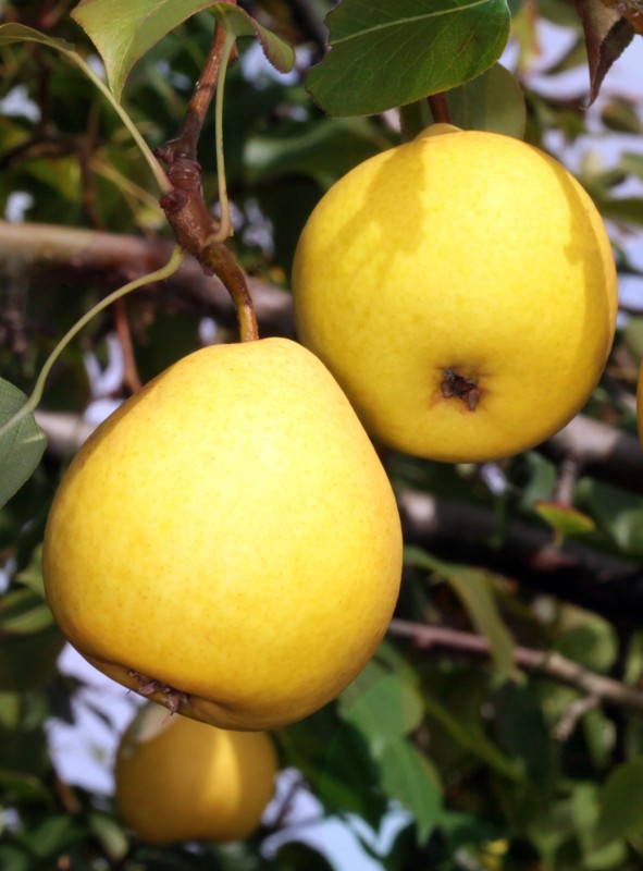 Бесподобный, уникальный осенний сорт, в котором благополучно сочетаются такие ценные качества, как морозостойкость, отличный внешний вид и отменный вкус. Плоды средней массой около 140 г, золотисто-солнечные, с лёгким зеленоватым оттенком и мелким веснушчатым крапом при полном созревании. Кожица гладкая, мякоть молочно-белая, очень сочная, нежная, тающая. Снимать желательно за неделю до полной спелости.