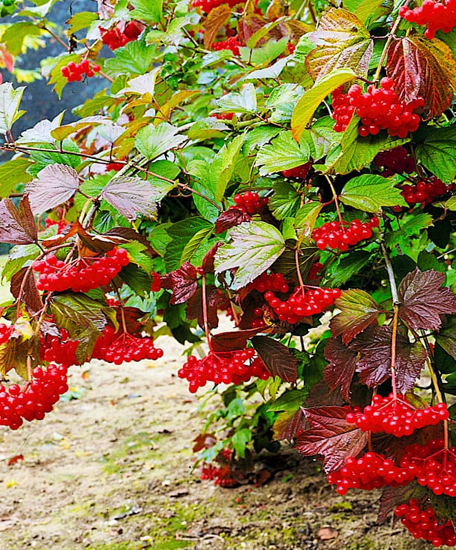 Для калины большое значение имеют растения-соседи. Её нельзя сажать рядом с белой акацией и хвойными культурами: они будут её сильно угнетать. А вот «дружит» она с жимолостью и барбарисом.