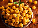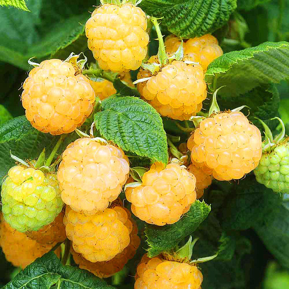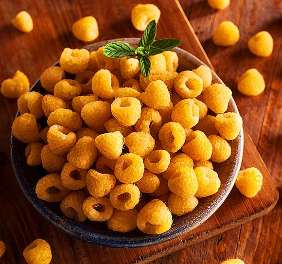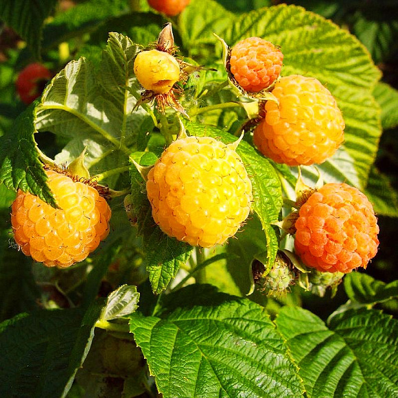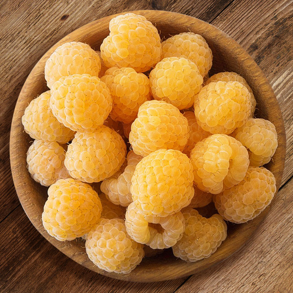 Самоплодный ремонтантный сорт с желто-золотыми ягодами редкой красоты и высокой вкусовой ценности. Деликатесный сладкий вкус с нотками ананаса, совершенная коническая форма, приятная текстура нежной ароматной сочной мякоти, а кроме того, полное отсутствие аллергенов, делают этот сорт абсолютно уникальным. Отличается повышенным содержанием сахаров. Плодоносит с июля до сильных заморозков. Дает мощные кусты высотой до 2 м и урожайностью до 5 кг. Хорошо приспосабливается к любым условиям выращивания, морозостойка. Рекомендуем выращивать ради одного обильного осеннего урожая. Для этого необходимо обрезать под корень после плодоношения (примерно в октябре).