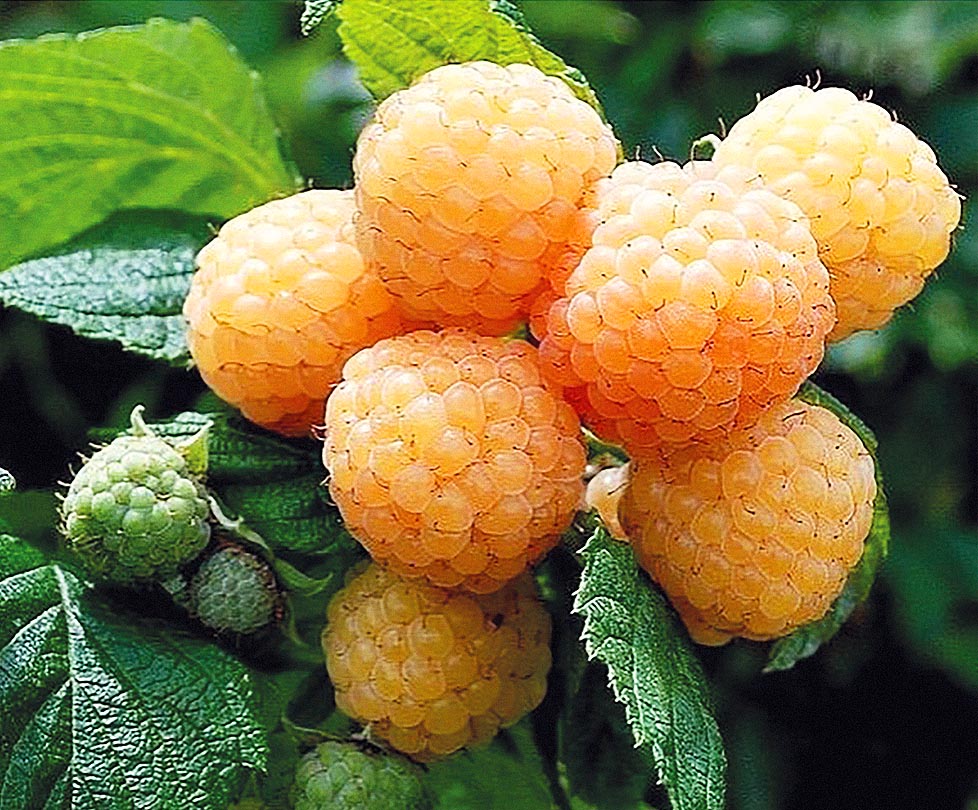 Щедро плодоносящий, непривередливый сорт-трудяга с крупными, очень красивыми плодами. Ягоды округлые, кремово-оранжевые или желтые, ароматные, с нежной кожицей и сладким вкусом. Уже спелые могут долго висеть на кусте и не загнивать. Растения около 1,5 м, морозостойкие. Отличительной чертой являются короткие ветви, благодаря которым куст не нуждается в подвязке и кажется просто облеплен малиной. Дает много поросли (при отсутствии загущения), размножается быстро. Устойчив к грибковым болезням и вирусам. Рекомендуем обрезать под корень после плодоношения. Масса одной ягоды 4-8 г. Урожайность в среднем 3 кг с куста.