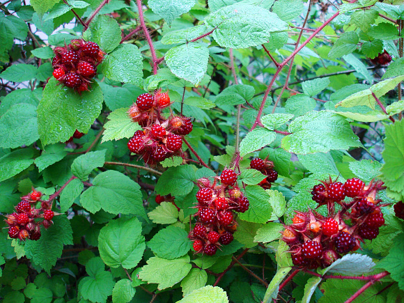 В последние годы эта новая культура вызывает огромный интерес у садоводов. Она потрясающе красива, даёт изумительные по вкусу крупные ягоды и прекрасно переносит зимние морозы! Казалось бы, — идеальное растение для приусадебного участка. Но есть одно НО: малина японская так быстро размножается вегетативным путём, что за 5—6 лет может заполонить весь участок, забивая все остальные культурные растения.