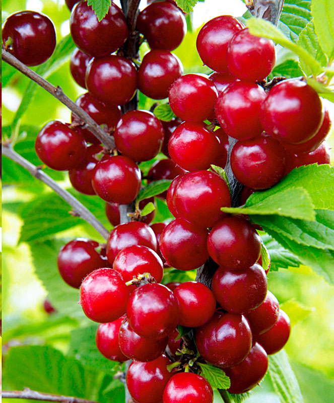 Болезни. Вишня, особенно старые её сорта, подвержены целому ряду болезней. Наиболее распространённые из них: клястероспориоз или дырчатая пятнистость, которая в первую очередь проявляется на листьях, стволе и плодах в виде оранжево-красных удлинённых пятен; коккомикоз, при котором на верхней части листа образуется большое количество маленьких коричневых или пурпурных пятен, которые, разрастаясь, сливаются в одно большое пятно. На нижней части листьев образуется бело-розовый налёт; монилиоз поражает цветки, которые усыхают и опадают, не давая урожая. Все эти болезни сопровождаются камедетечением.