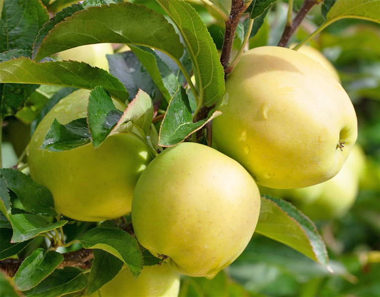 Для любителей сочной и плотной яблочной мякоти и сладкого десертного вкуса. Сорт появился почти 150 лет назад. Высота взрослого дерева – 3 м. Название переводится как «золотое лакомство». Бесспорный фаворит среди зимних яблок. Плоды янтарно-желтые, весом 140–170 г, с возможным легким румянцем, крепко держатся на веточках, не осыпаются. Хранятся до 6 месяцев. Сорт самобесплодный. Зимостойкость −29 °С.