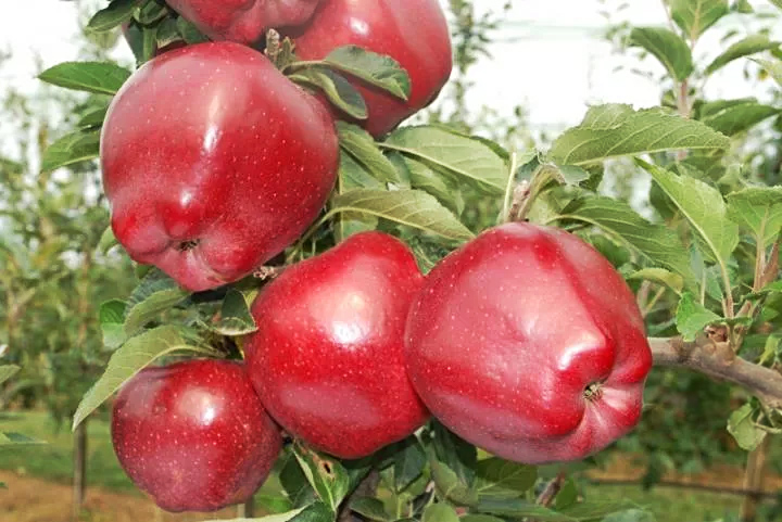 Зимний сорт приехал к нам от «дядюшки Сэма». Поздней осенью крупные бордовые плоды (200–300 г), с пятью холмиками на макушке, щедро унизывают ветви сверху донизу. Их мякоть отличается пряным мускатным привкусом и необычайной сочностью. Филигранно отточенные, ровно окрашенные, отполированные природой яблоки. Урожай сохраняется до рождественских праздников. В средней полосе России зимует с укрытием.