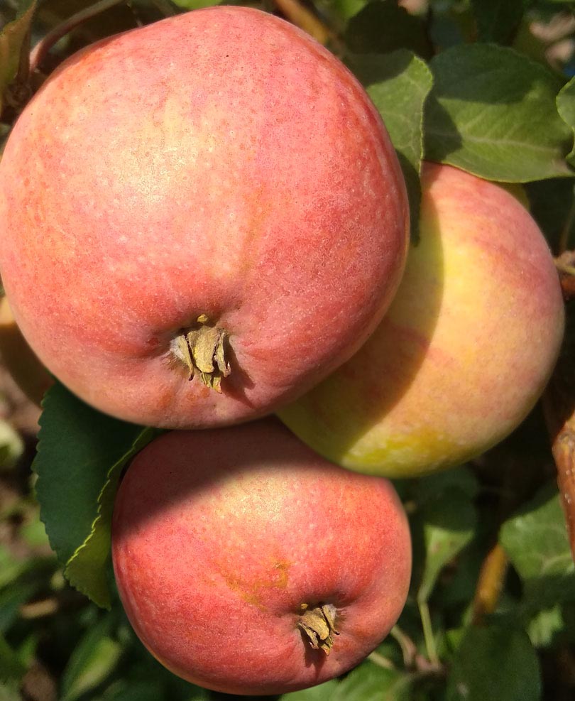 Яблоня зацвела на второй год, оставили одно яблоко. На следующий год яблоки начали созревать в конце августа. Размер средний, вкус кисло-сладкий, хороший. Дерево растёт на открытом месте, продувается северным ветром, зимовало отлично.
