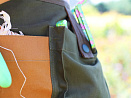 В кармашках найдется место для всех инструментов - секатора, совка, рыхлителя, ножниц, садовых ножей, не забыт отсек и под блокнот для записей или пакетика с семенами. И конечно же предусмотрено отделение для телефона и очков. Все и всегда будет под рукой и в полном порядке.
