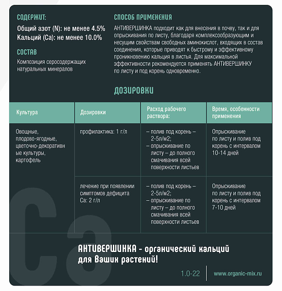 Уникальная формула с аминокислотами и витаминами растительного происхождения обеспечивает растения кальцием, одновременно стимулируя метаболизм растений.