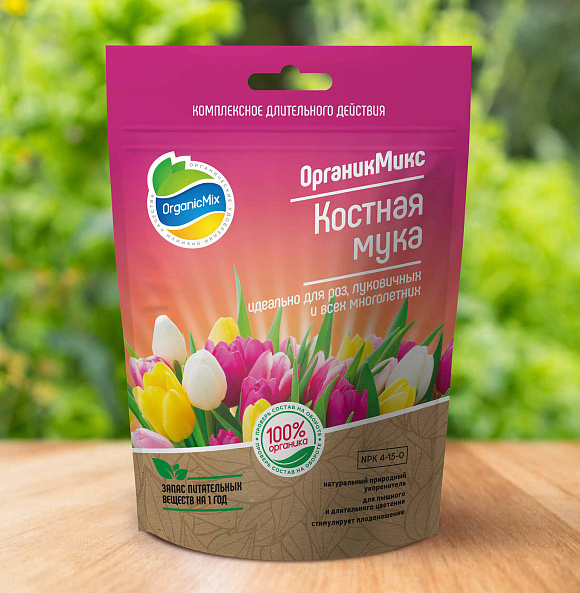 Специально подготовленная для растений костная мука для применения в качестве органического источника фосфора и азота. При внесении в почву, растение получает энергию для формирования мощной разветвленной корневой системы и образования крупных бутонов, соцветий и плодов. Также применяется при пересадке саженцев для быстрого укоренения и развития корневой системы.